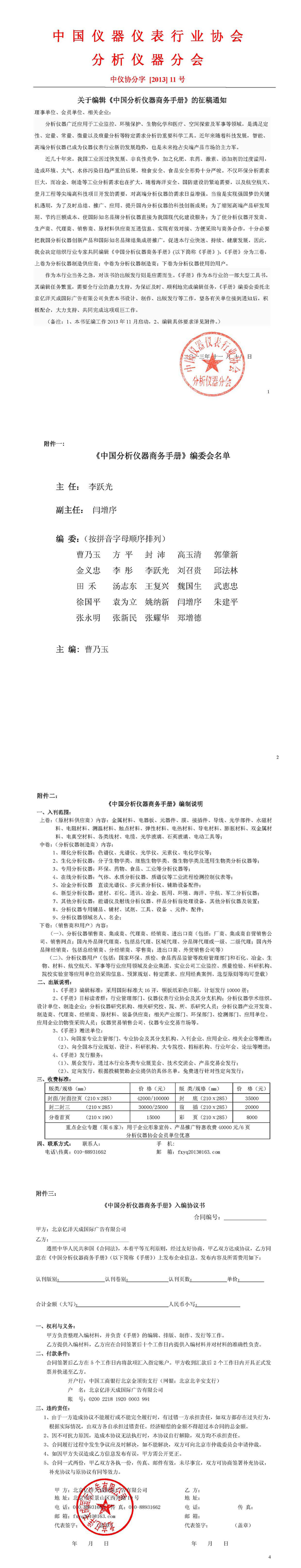 關于編輯《中國分析儀器商務手冊》的征稿通知