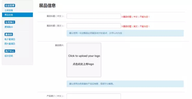 可自主編輯公司信息和展品信息,中英結合,圖文并茂,作為后期線上推廣內(nèi)容。
