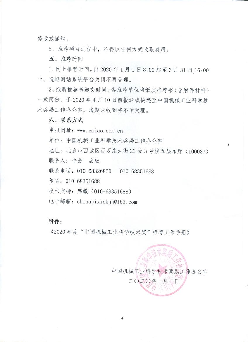 2020年度中國機械工業科學技術獎推薦工作正式開展
