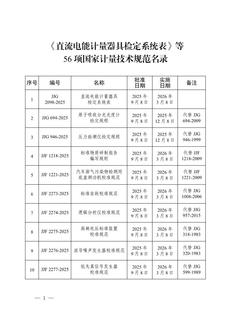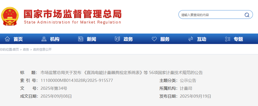 市場監管總局關于發布《直流電能計量器具檢定系統表》等56項國家計量技術規范的公告