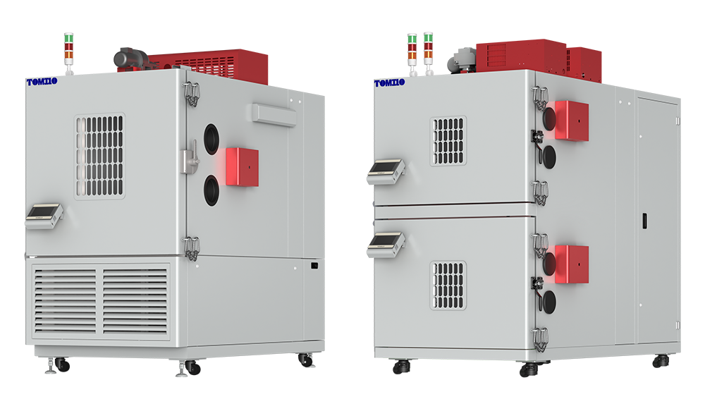 在電池測試環境試驗設備中,多間室共享一套制冷機組(含單個冷凝器+多個蒸發器)的架構普遍存在。每個間室需獨立設置溫濕度條件以模擬不同測試場景,但傳統系統難以根據各間室實時負荷動態調節制冷劑流量,導致:制冷效率低下,間室溫度波動大;壓縮機頻繁啟?;蜻^載運行;能源浪費與設備壽命縮短等問題。