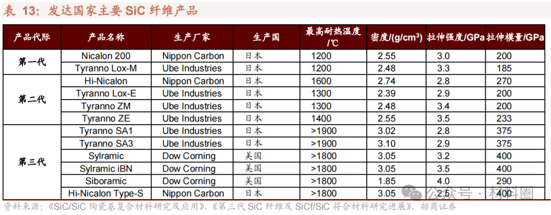 (2)碳化硅纖維:在西方國家的技術封鎖下,我國第三代SiC纖維產(chǎn)業(yè)化仍處于起步階段