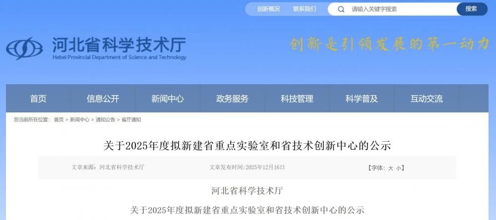 河北省科學技術(shù)廳關(guān)于2025年度擬新建省重點實驗室和省技術(shù)創(chuàng)新中心的公示