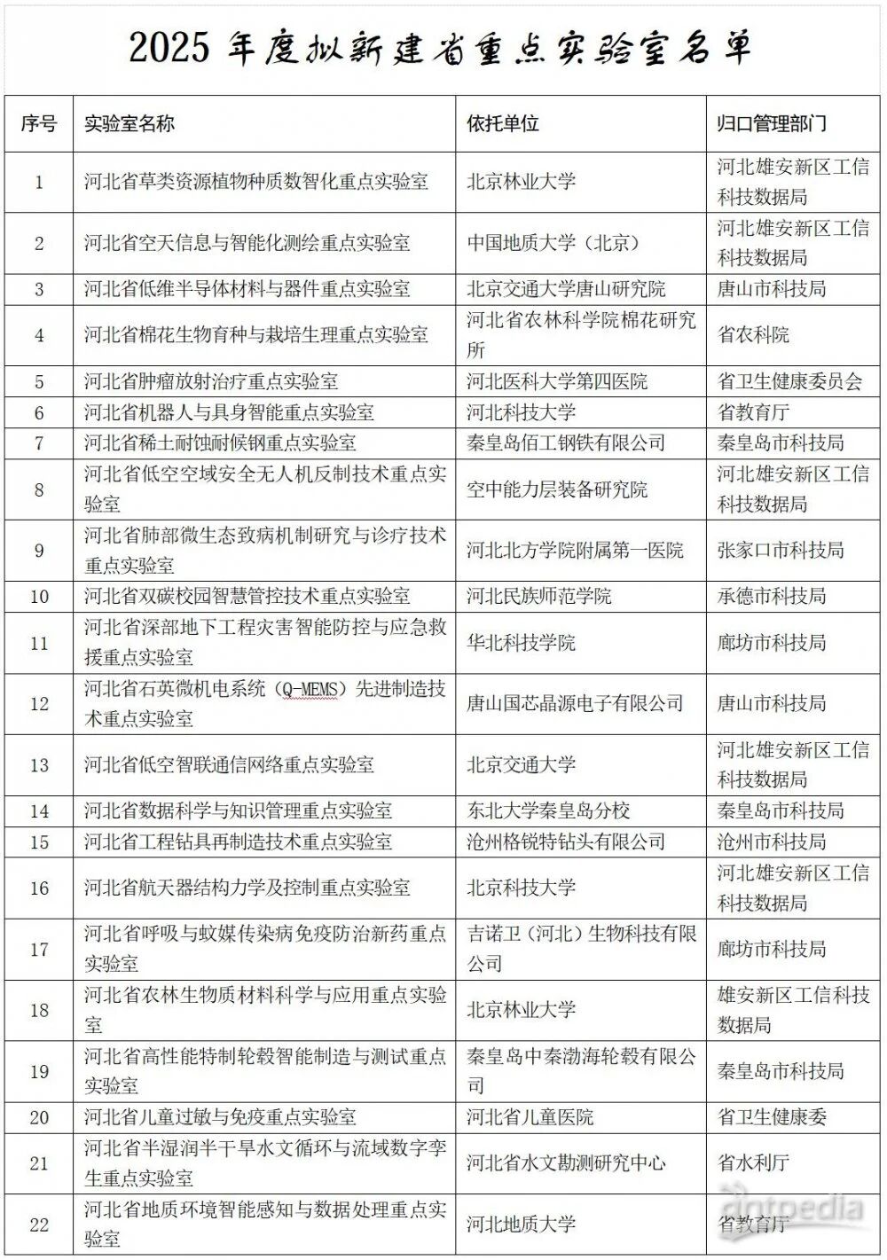 近日,河北省科學技術(shù)廳發(fā)布消息,2025 年度擬新建 43 家省重點實驗室和 86 家省技術(shù)創(chuàng)新中心,目前正處于公示階段。