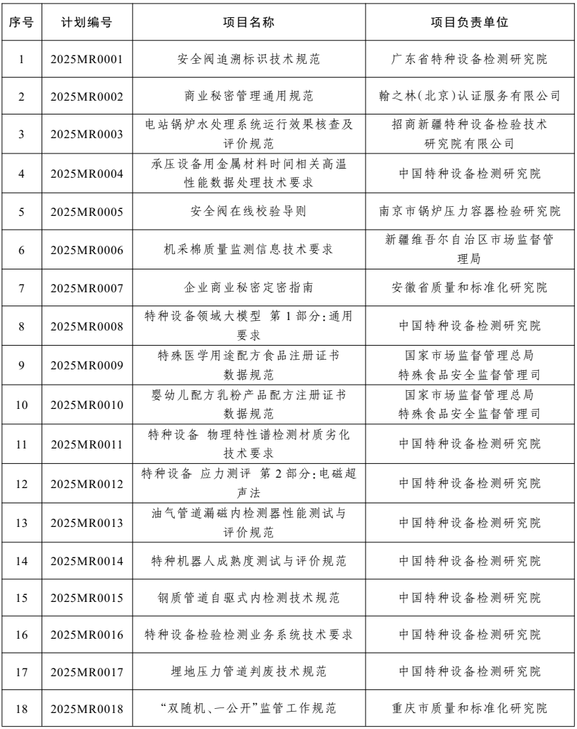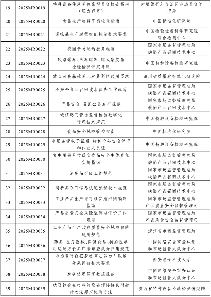 2025年度市場監(jiān)管行業(yè)標準制修訂項目計劃